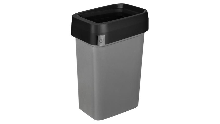 Бак изготовлен из прочного пластика. Удобная система открывания крышки позволит выбросить мусор в ведро даже с занятыми руками, просто толкнув створку вниз. Крышка может фиксироваться в открытом положении для крупного мусора. Бак имеет специальное крепление для мусорных пакетов, легко моется, блокирует неприятные запахи, препятствуя их распространению. Цветовая дифференциация ободов незаменима для организации раздельного сбора мусора дома. Бак отлично подойдет для использования в офисе и гармонично впишется в современный домашний интерьер.