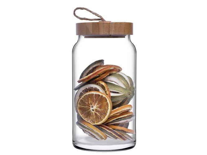Банка для сыпучих прод. 1130 мл. с дерев. крышкой Вуди /1/6/288/