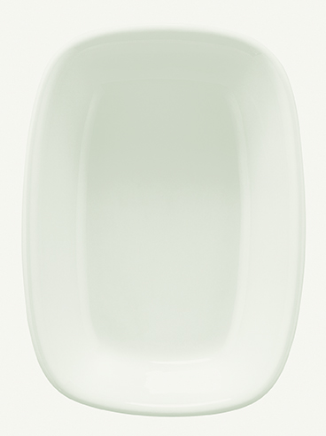Блюдо белого цвета со сливочным оттенком.