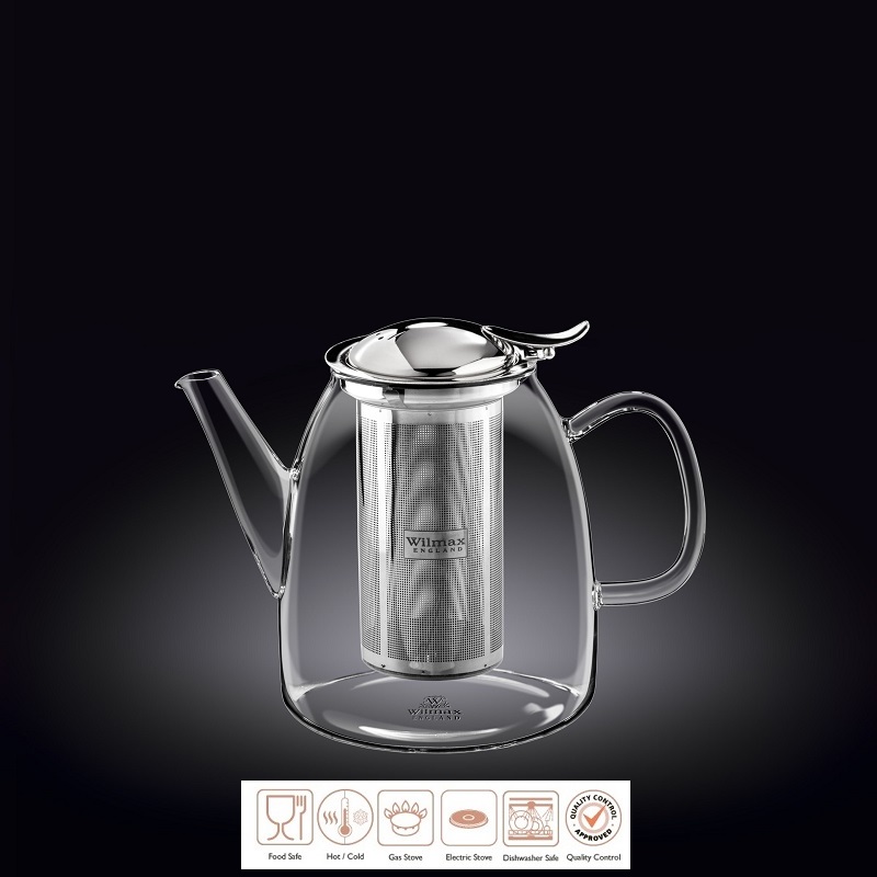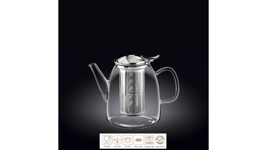 Чайник 600 мл. заварочный с откидной крышкой и колбой нерж. Термостекло Wilmax /1/24/
