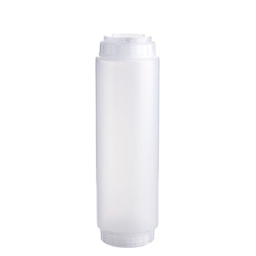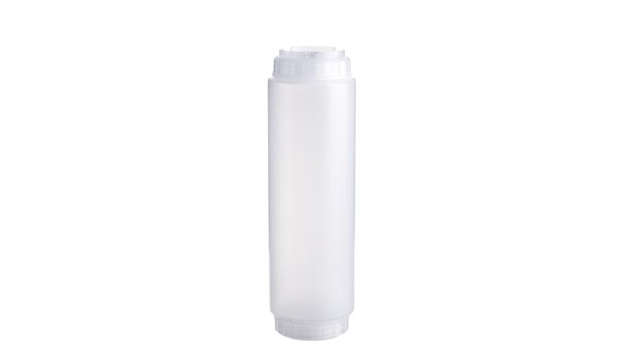 Емкость для соуса 1000 мл выполнена из прочного пищевого пластика и предназначена для профессионального использования в сегменте HoReCa. Конструкция имеет две откручивающиеся крышки и съемный силиконовый клапан, что обеспечивает удобство наполнения, использования и ухода, а также позволяет дозировать содержимое без подтеков и экономит место для хранения. Прозрачный цвет служит универсальной маркировкой и облегчает визуальный контроль содержимого. Подходит для мытья в посудомоечной машине.