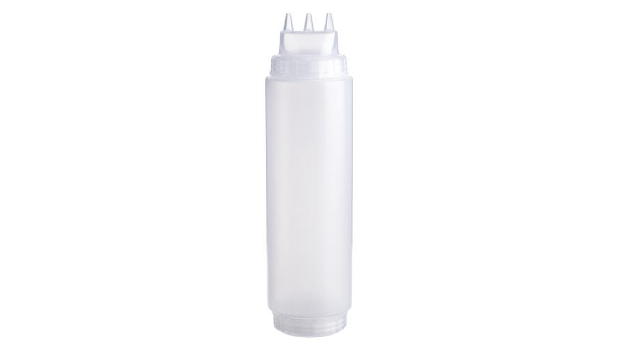 Емкость для соуса 1000 мл выполнена из прочного пищевого пластика и предназначена для профессионального использования в сегменте HoReCa. Конструкция с двумя откручивающимися крышками обеспечивает удобство наполнения, использования и ухода. Тройной дозирующий носик позволяет быстро и точно распределять содержимое. Прозрачный цвет служит универсальной маркировкой и облегчает визуальный контроль содержимого. Подходит для мытья в посудомоечной машине.