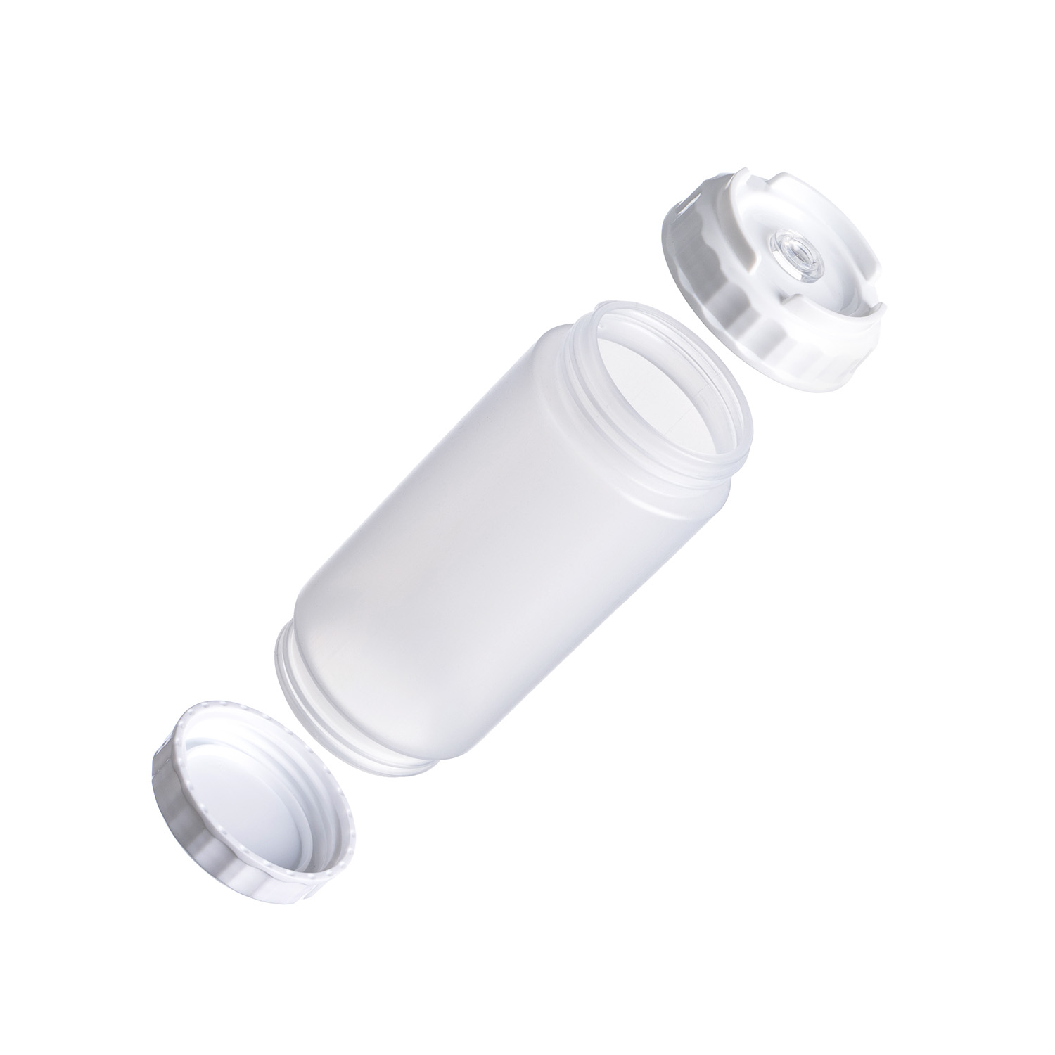 Емкость для соуса 500 мл. d=70 мм. h=166 мм. с 2 крышками, с силик. носик. прозрачная, крышки белые GP /1/96/