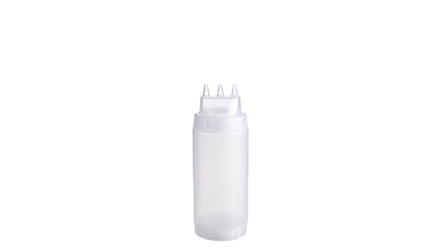 string(832) "Емкость для соуса 500 мл выполнена из прочного пищевого пластика и предназначена для профессионального использования в сегменте HoReCa. Конструкция с двумя откручивающимися крышками обеспечивает удобство наполнения, использования и ухода. Тройной дозирующий носик позволяет быстро и точно распределять содержимое. Прозрачный цвет служит универсальной маркировкой и облегчает визуальный контроль содержимого. Подходит для мытья в посудомоечной машине."