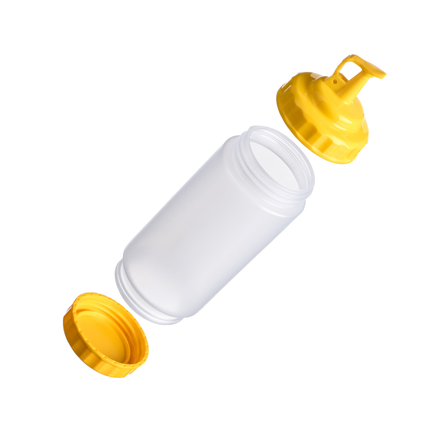 Емкость для соуса 500 мл выполнена из прочного пищевого пластика и предназначена для профессионального использования в сегменте HoReCa. Конструкция с двумя откручивающимися крышками обеспечивает удобство наполнения, использования и ухода. Дозирующий носик с крышкой-клапаном предотвращает проливы и защищает содержимое от загрязнений. Желтый цвет служит маркировкой для горчицы и меда. Прозрачный корпус облегчает визуальный контроль содержимого. Подходит для мытья в посудомоечной машине.