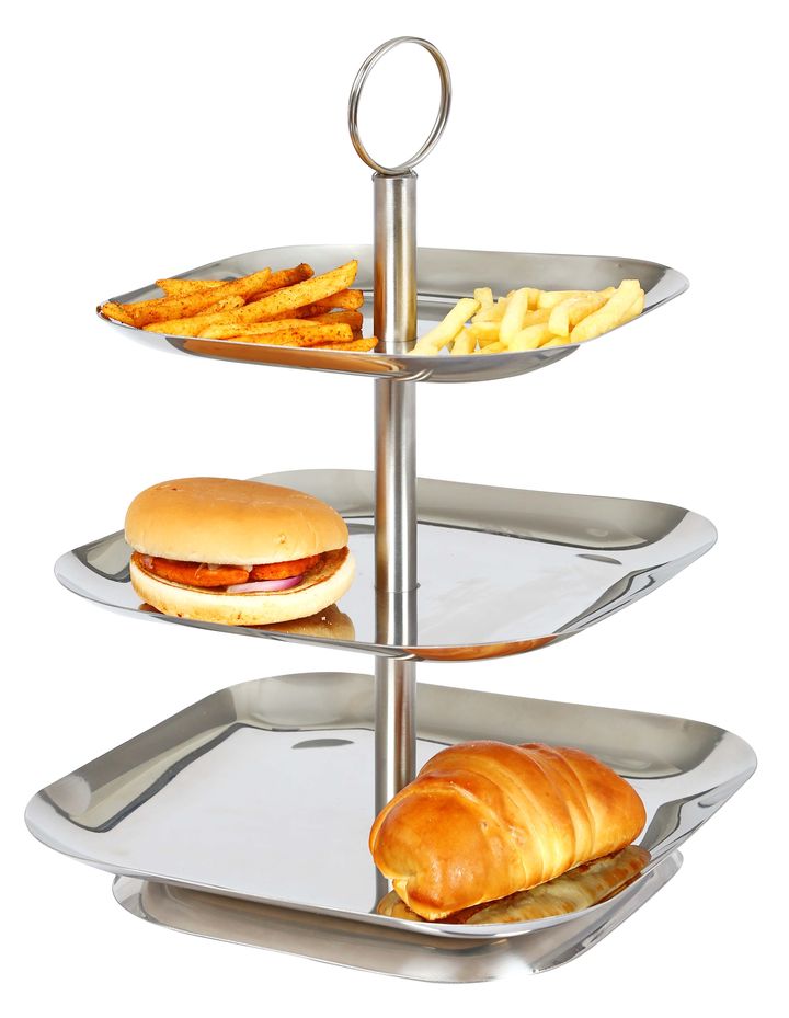 Этажерка обязана своим появлением французским мастерам, установившим тарелки разного диаметра на одну вертикальную ось.