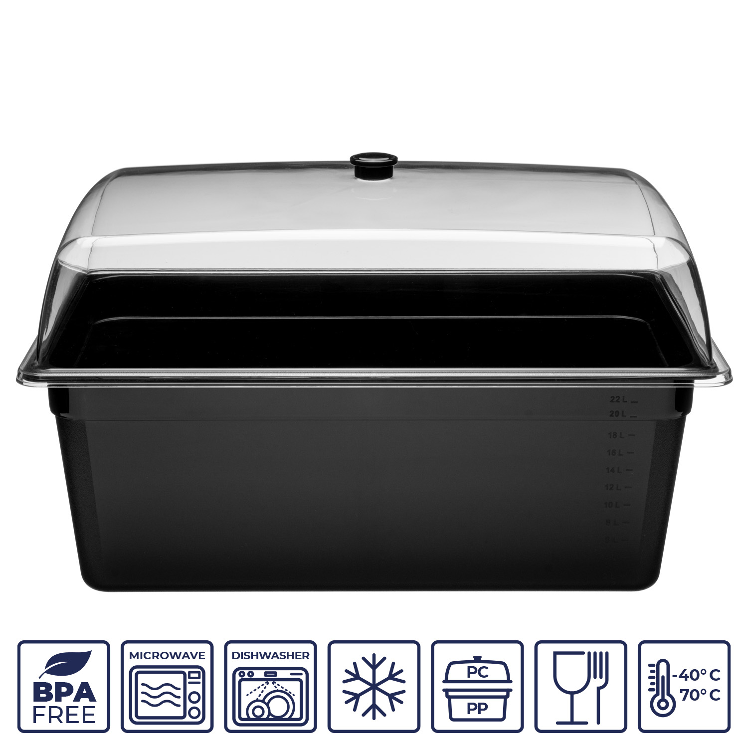 Гастроемкость 1/1 h=200 мм. 24 л. п/п черная (кр. 76826) GP /1/6/