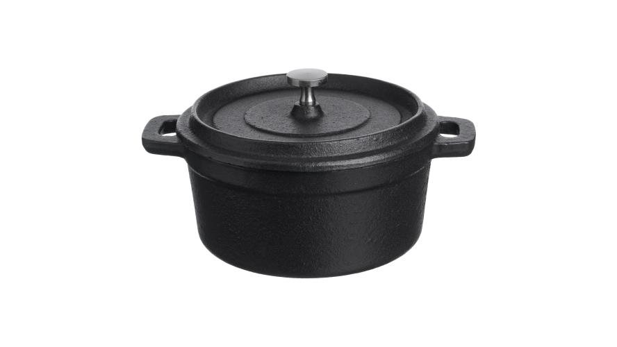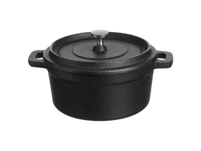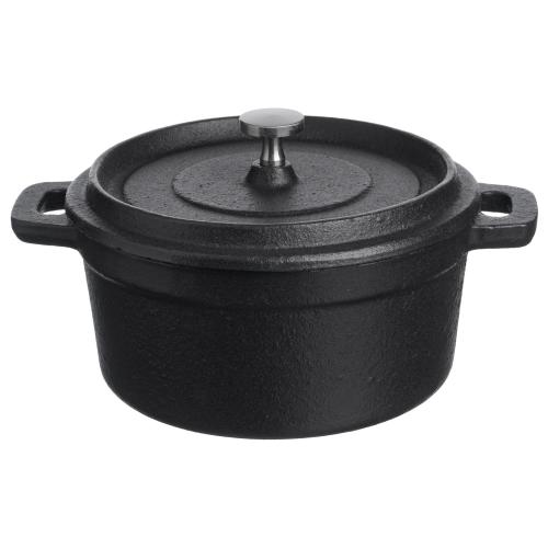 Кастрюля для запекания 550 мл. d=120 мм. h=80 мм. с крышкой, черная, чугун /1/