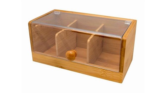 Контейнер для пакетиков чая 3 отд. 22*11*10 см. бамбук с пластик. прозрачной крышкой VB /1/
