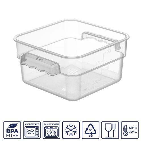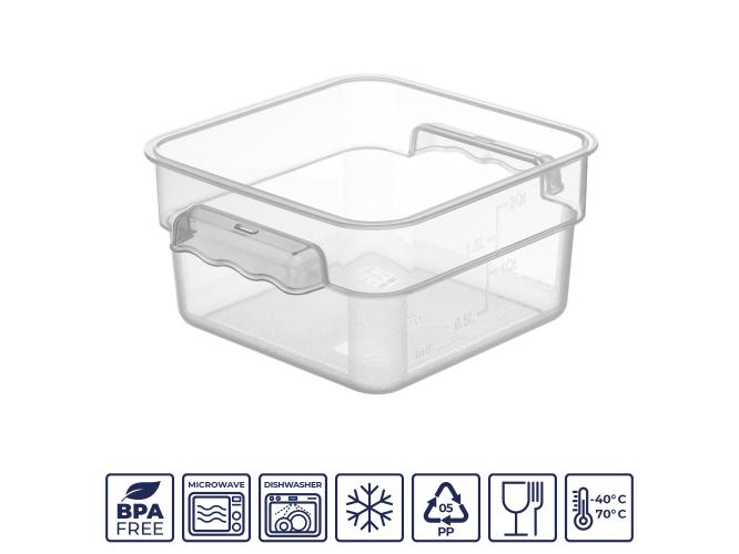 Контейнер для продуктов квадратный 1,9 л. 19*19*9,7 см. с мерной шкалой, прозрачный, п/п, без крышки (крышки 76706, 76707, 76708,76709) GP /1/12/
