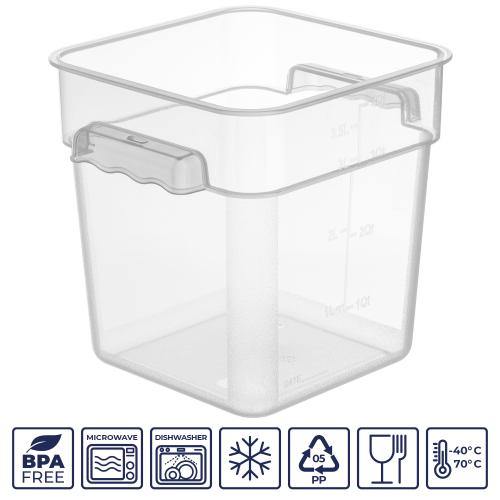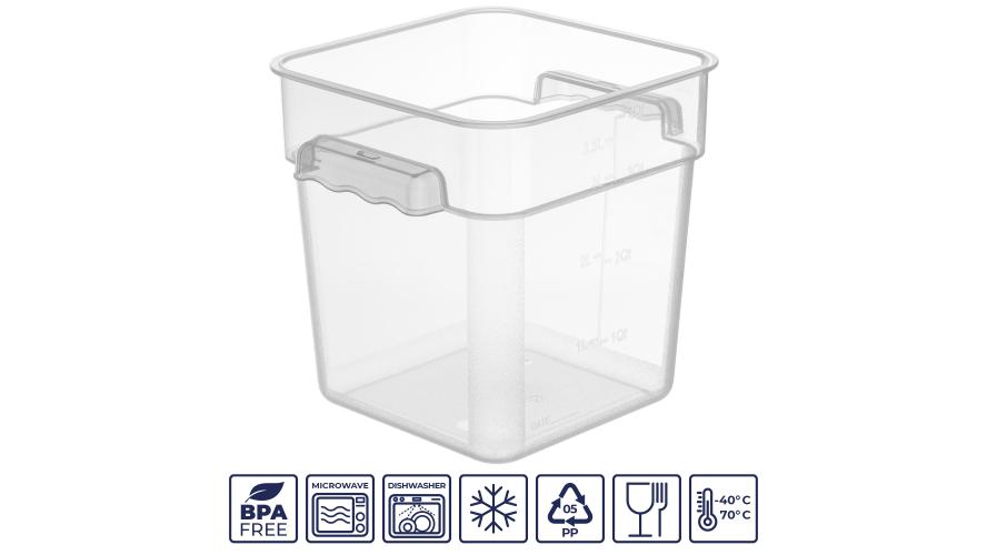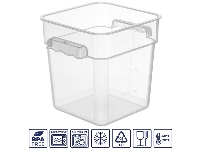 Контейнер для продуктов квадратный 3,8 л. 19*19*18,7 см. с мерной шкалой, прозрачный, п/п, без крышки (крышка 76706, 76707, 76708, 76709) GP /1/12/