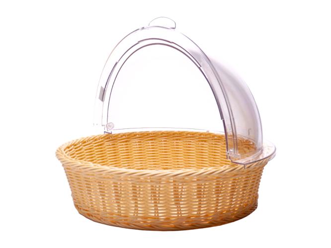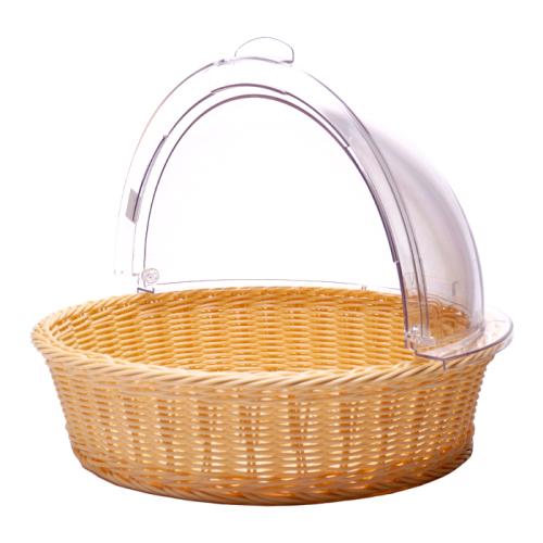 Корзина для хлеба круглая d=40 см. h=10 см. бежевая полиротанг с крышкой Roll-Top MGprof /1/