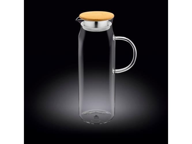 Кувшин 1,5 л. d=90 мм. h=285 мм. с крышкой бамбук + сетка нерж Термостекло Wilmax /1/18/