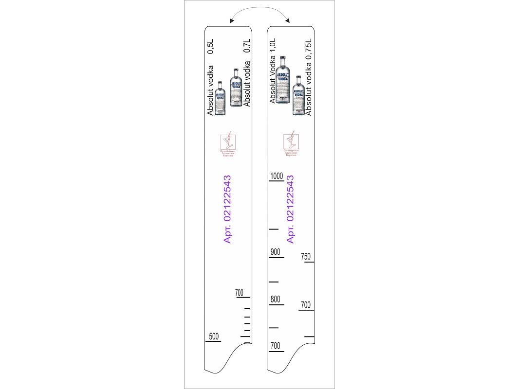 Линейка Absolut (0,5 л./0,7 л./0,75 л./1 л.) L=28 см. В=2 см. /1/