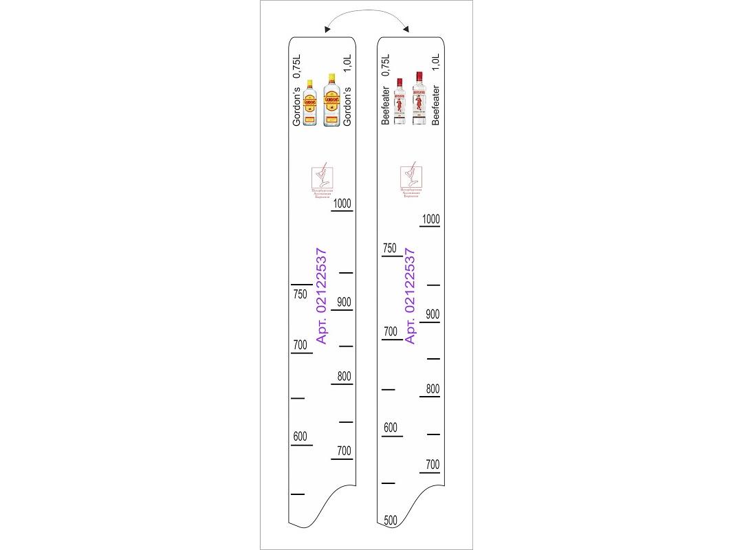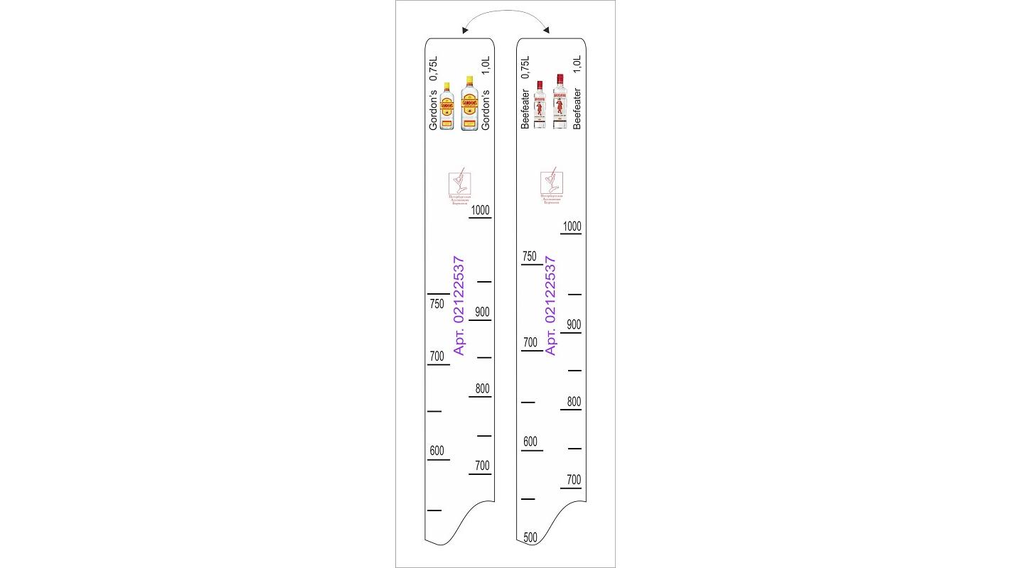 Линейка Beefeater (0.7 л./1 л.)/ Gordon's (0.75 л./1 л.) L=28 см. В=2 см. /1/