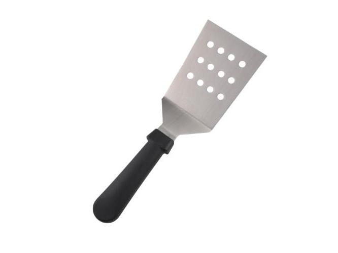 Лопатка 28 см. изогнутая раб.часть 11,5*9 см. нерж. широкая перф. с пласт. ручкой черная MGsteel /1/96/