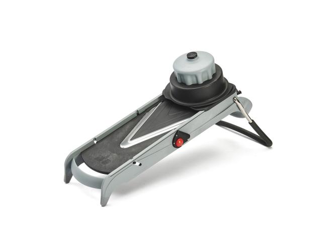 С помощью овощерезки можно получать различные типы нарезок: ломтики, «жюльен», кубики толщиной 4 и 10мм, ромбики. В комплект входят: каретка, толкатель, гладкая платформа и 2 платформы для нарезки "Жульен" 4мм и 10мм.