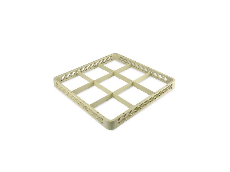 Надстройка для кассеты 9 секций, бежевая (полипропилен) используется как дополнительный элемент для установки на основную кассету с целью увеличения её высоты. Кассеты применяются для мытья одноразмерной посуды (фужеров, бокалов и др.), кухонного инвентаря, столовых приборов на профессиональной кухне предприятий общественного питания. Кассеты имеют стандартные размеры, что позволяет использовать их во всех существующих профессиональных посудомоечных машинах: фронтального, купольного и туннельного типа. Максимальный диаметр посуды для размещения в ячейках кассеты 150 мм. Помимо мойки, кассеты используются для хранения и транспортировки посуды из моечной зоны в зону раздачи, что позволяет избежать её загрязнения и значительно уменьшить бой посуды.