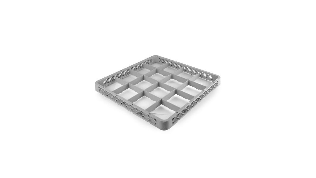 Надстройка для кассеты 16 секций, серая (полипропилен) используется как дополнительный элемент для установки на основную кассету с целью увеличения её высоты. Кассеты применяются для мытья одноразмерной посуды (фужеров, бокалов и др.), кухонного инвентаря, столовых приборов на профессиональной кухне предприятий общественного питания. Кассеты имеют стандартные размеры, что позволяет использовать их во всех существующих профессиональных посудомоечных машинах: фронтального, купольного и туннельного типа. Максимальный диаметр посуды для размещения в ячейках кассеты 113 мм. Помимо мойки, кассеты используются для хранения и транспортировки посуды из моечной зоны в зону раздачи, что позволяет избежать её загрязнения и значительно уменьшить бой посуды.