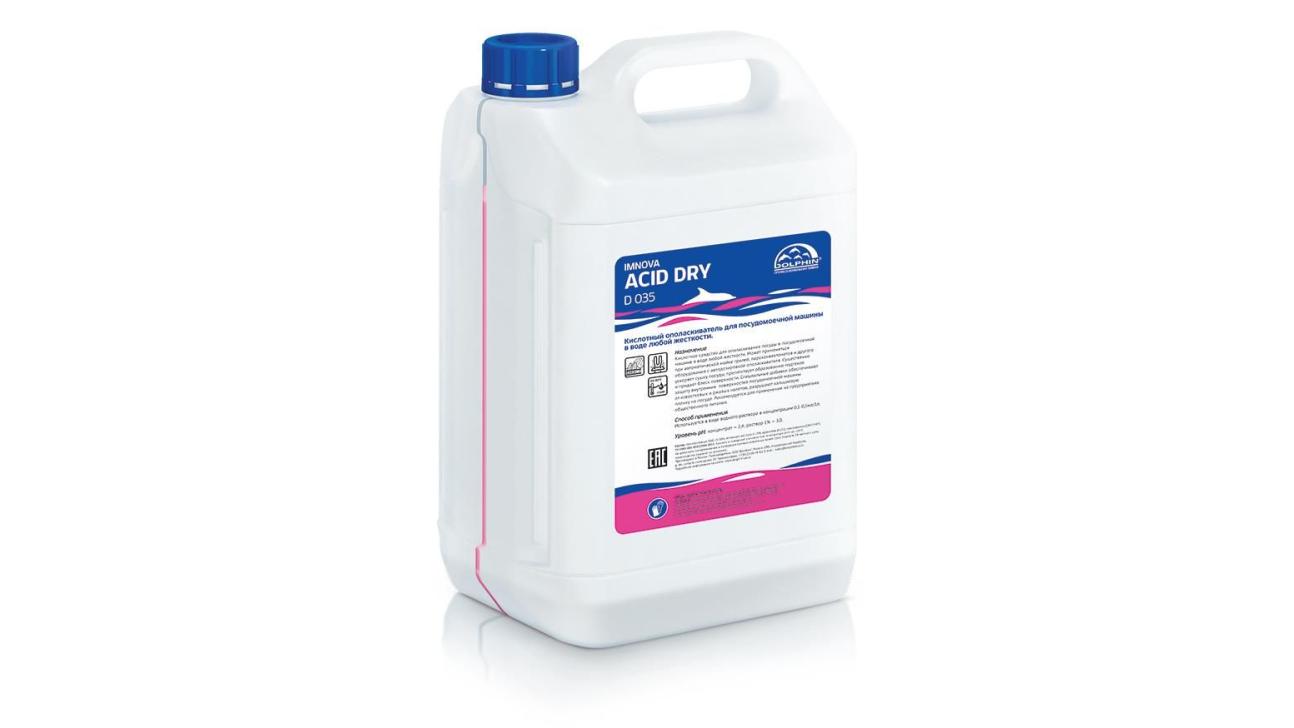 Ополаскиватель для посудомоечных машин в воде любой жёсткости. Слабокислотное средство предназначено для автоматических посудомоечных машин. Придаёт посуде блеск, ускоряет сушку и препятствует образованию подтёков. Для бытовых и профессиональных автоматических посудомоечных машин разного типа, на предприятиях общественного питания и других профильных учреждениях. Предотвращает образование известкового налёта и ржавых подтёков в машине, разрушает кальциевую плёнку на посуде. При разбавлении 1:2 водой может использоваться как ополаскиватель для грилей, пароконвектоматов и другого пищевого оборудования с автоматической дозировкой ополаскивателя.Использовать в виде водного раствора в концентрации: 0,1-0,5 мл/1л воды. Для оптимальногорезультата рекомендуется использовать после моющих средств серии IMNOVA. В грилях, парокон-вектоматах и другом оборудовании с автодозировкой ополаскивателя использовать в виде водногораствора: 1 часть средства на 2 части воды.Предотвращает образование известкового налёта и ржавых подтёков