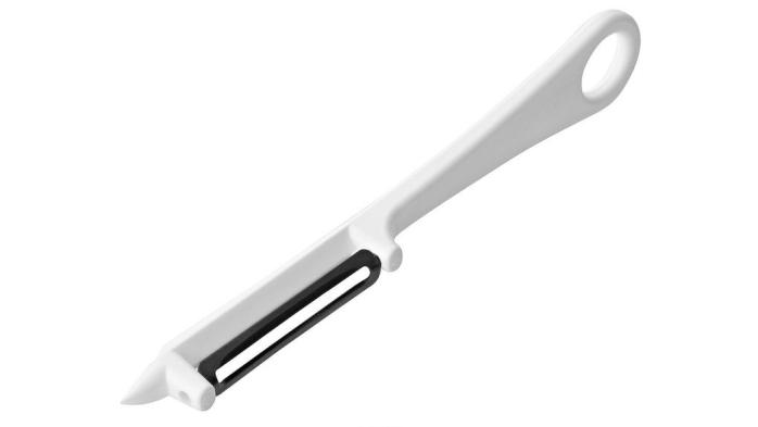 Ручка овощечистки имеет петлю для удобства подвешивания на крючок.