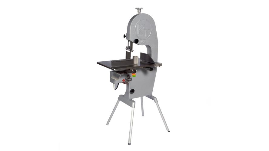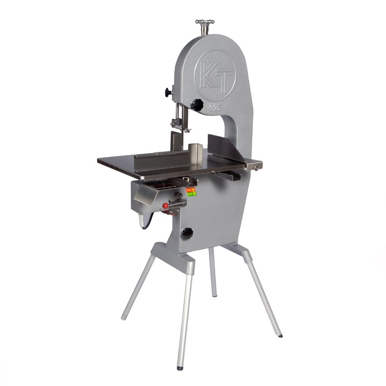 Пила для мяса Koneteollisuus Oy (KT) 400 используется на предприятиях пищевой промышленности и торговли для нарезки на куски свежего и замороженного мяса, рыбы и птицы. Модель с 1 скоростью оснащена подвижным столом и тормозным двигателем, благодаря которому режущее полотно останавливается мгновенно после отключения электропитания. Рабочее полотно, защитный кожух и кожух полотна выполнены из нержавеющей стали, корпус пилы и ножки - из алюминия.