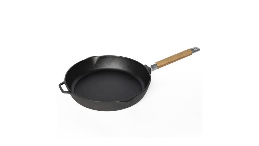 Сковорода d=28 см. h=5,5 см. 3,0 л. чугун. со съем дерев. ручкой /1/8/