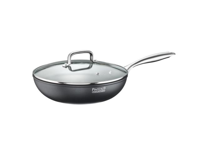 Сковорода Pintinox c антипригарным покрытием QuanTanium® от Whitford. Сковорода глубокая в комплекте со стеклянной крышкой.