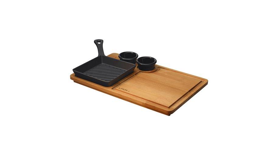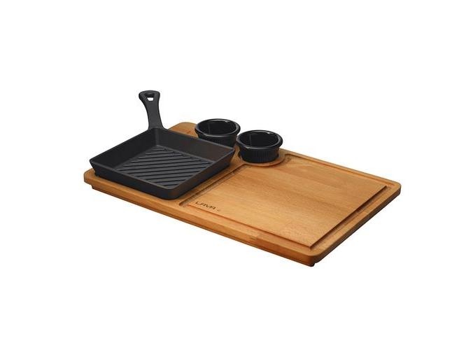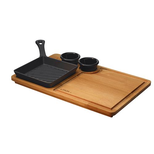 Сковорода-гриль порц. 16*16 см. h=3 см. 0,45 л. чугун. на дерев. подставке LAVA /1/5/