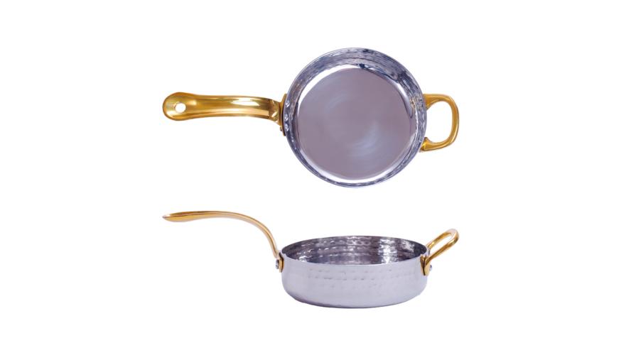 Сковорода порц. d=12 см. h=3,5 см. 0,4 л. нерж. глубокая с 2 ручками латунь MGsteel /1/36/ АКЦИЯ