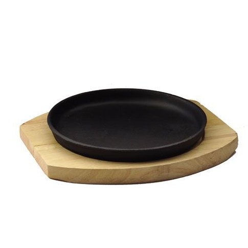 Сковорода порц. d=18,5 см. h=2 см. чугун. на дерев. подставке /1/10/