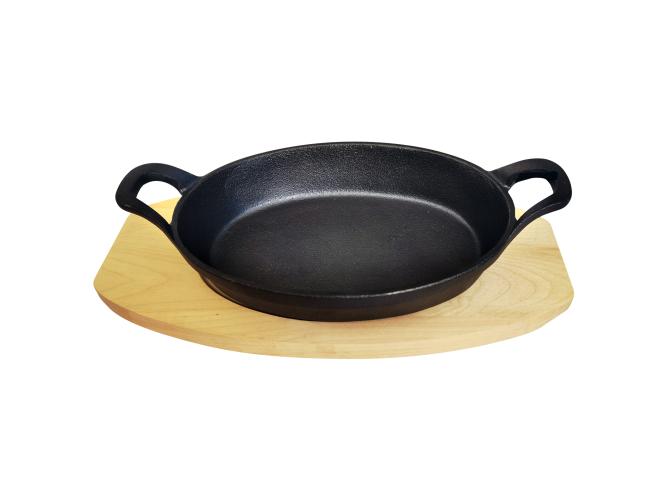 Сковорода порц. овальная 23*16,5 см. h=4,5 см. 1,0 л. чугун. с 2 ручками на дерев. подставке /1/