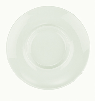 Тарелка белого цвета со сливочным оттенком.