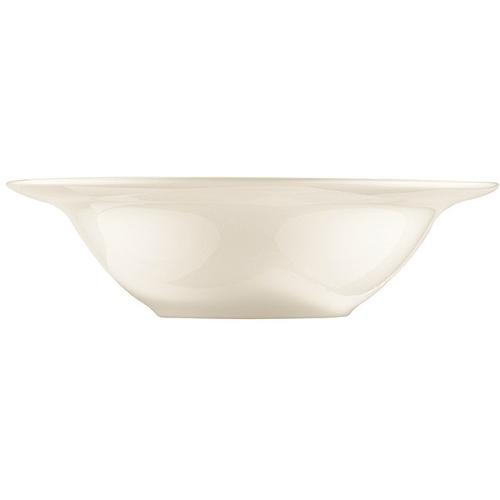 Тарелка белого цвета со сливочным оттенком.