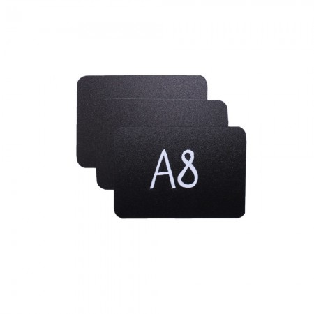 Меловой ценник с двусторонней шероховатостью черный формат А8 изготовлен из полипропилена 0.5 мм. (скругленные углы)