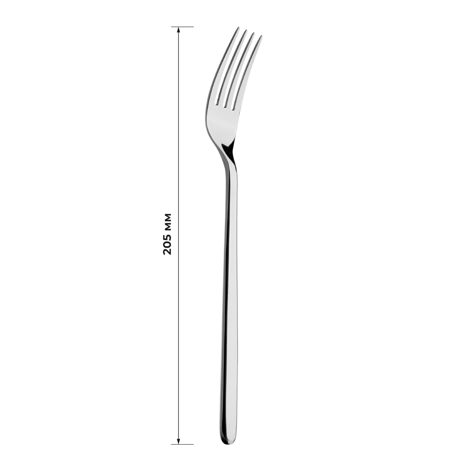 Длина изделия 205 мм, толщина ручки 3 мм, полировка зеркальная."