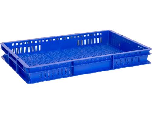 Пластиковые ящики арт. 423, размерами 600х400х75мм, универсальные штабелируемые с перфорированными стенками и дном. Используются чаще всего под пирожные, а также под заморозку полуфабрикатов, но также и во всех отраслях: овощи, фрукты, мясо и рыба. За счет своей высоты удобен для хранения мелких предметов. Часто используется как поддон под другую тару.
