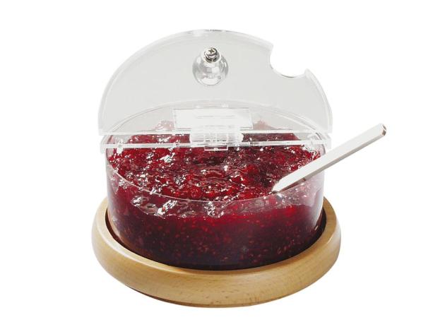 Емкость для джема охлаждаемая 0,6 л. d=14 см. h=9 см. с крышк. на дерев. подст. APS /1/