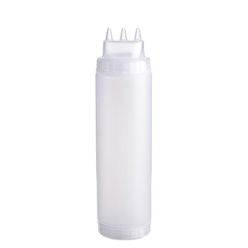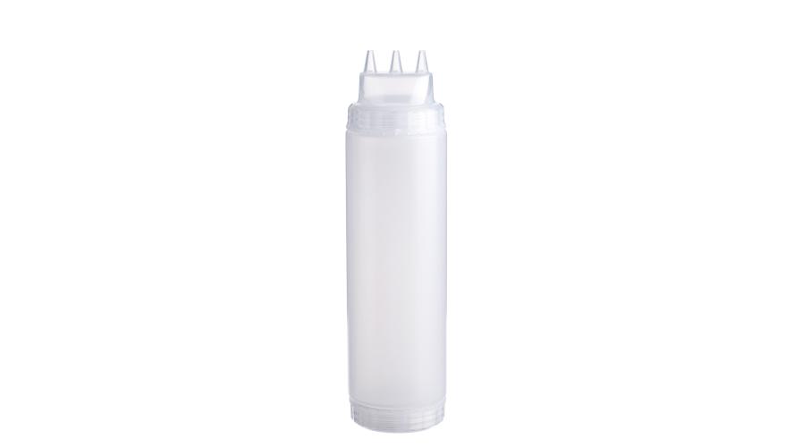 Емкость для соуса 750 мл выполнена из прочного пищевого пластика и предназначена для профессионального использования в сегменте HoReCa. Конструкция с двумя откручивающимися крышками обеспечивает удобство наполнения, использования и ухода. Тройной дозирующий носик позволяет быстро и точно распределять содержимое. Прозрачный цвет служит универсальной маркировкой и облегчает визуальный контроль содержимого. Подходит для мытья в посудомоечной машине.