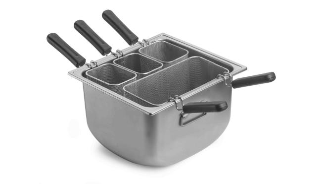 Кастрюля для пасты Pintinox Tender используется на предприятиях общественного питания и торговли для приготовления макаронных изделий на плитах с любым типом нагрева, включая индукционный.