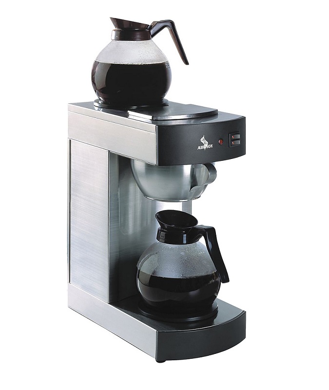Кофеварка предназначена для приготовления кофе из молотых зерен. Оборудование изготовлено из нержавеющей стали. Модель оснащена подставкой для кофейника и нагревательной плитой, поддерживающей температуру приготовленного напитка. Кофейники, изготовленные из стекла и пластика поставляются отдельно. Объем кофейника 2,2 л.