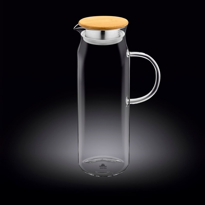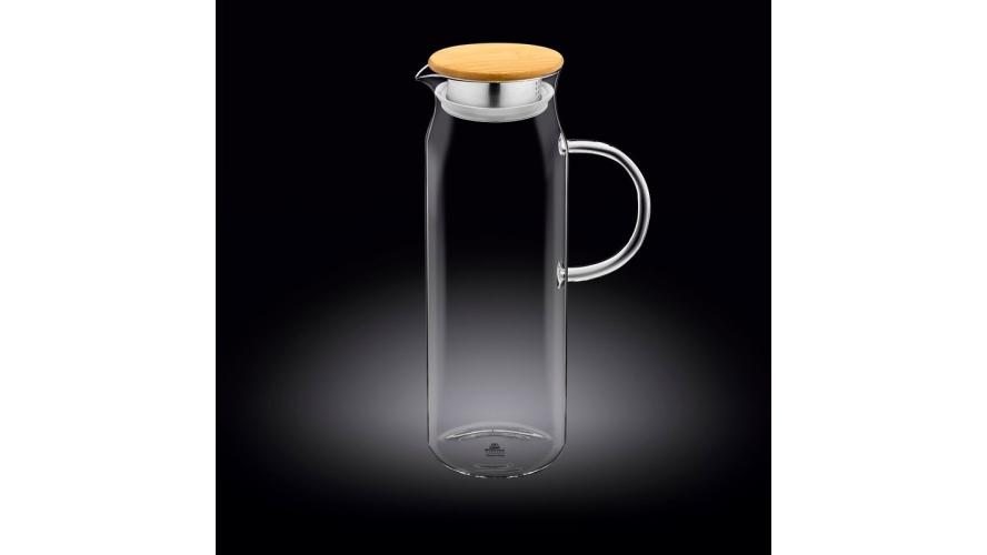 Кувшин 1,5 л. d=90 мм. h=285 мм. с крышкой бамбук + сетка нерж Термостекло Wilmax /1/18/