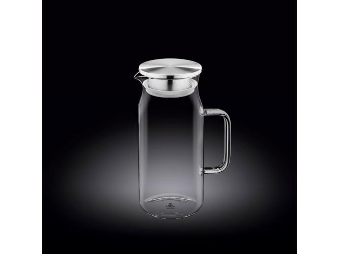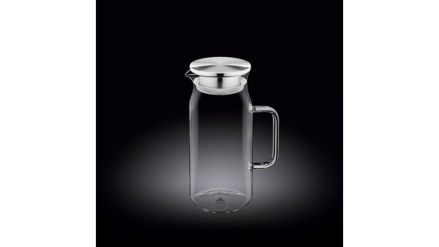 Кувшин 1 л. d=85 мм. h=210 мм. с крышкой + сетка нерж Термостекло Wilmax /1/18/