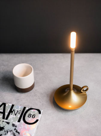 Выполнен из высококачественных материалов, таких как алюминий, что обеспечивает прочность и долговечность изделия. Работает от аккумулятора. Сенсорное управление настольной лампы с 3 уровнями яркости (в т.ч. с имитацией горения свечи) позволяет легко менять яркость свечения лампы.