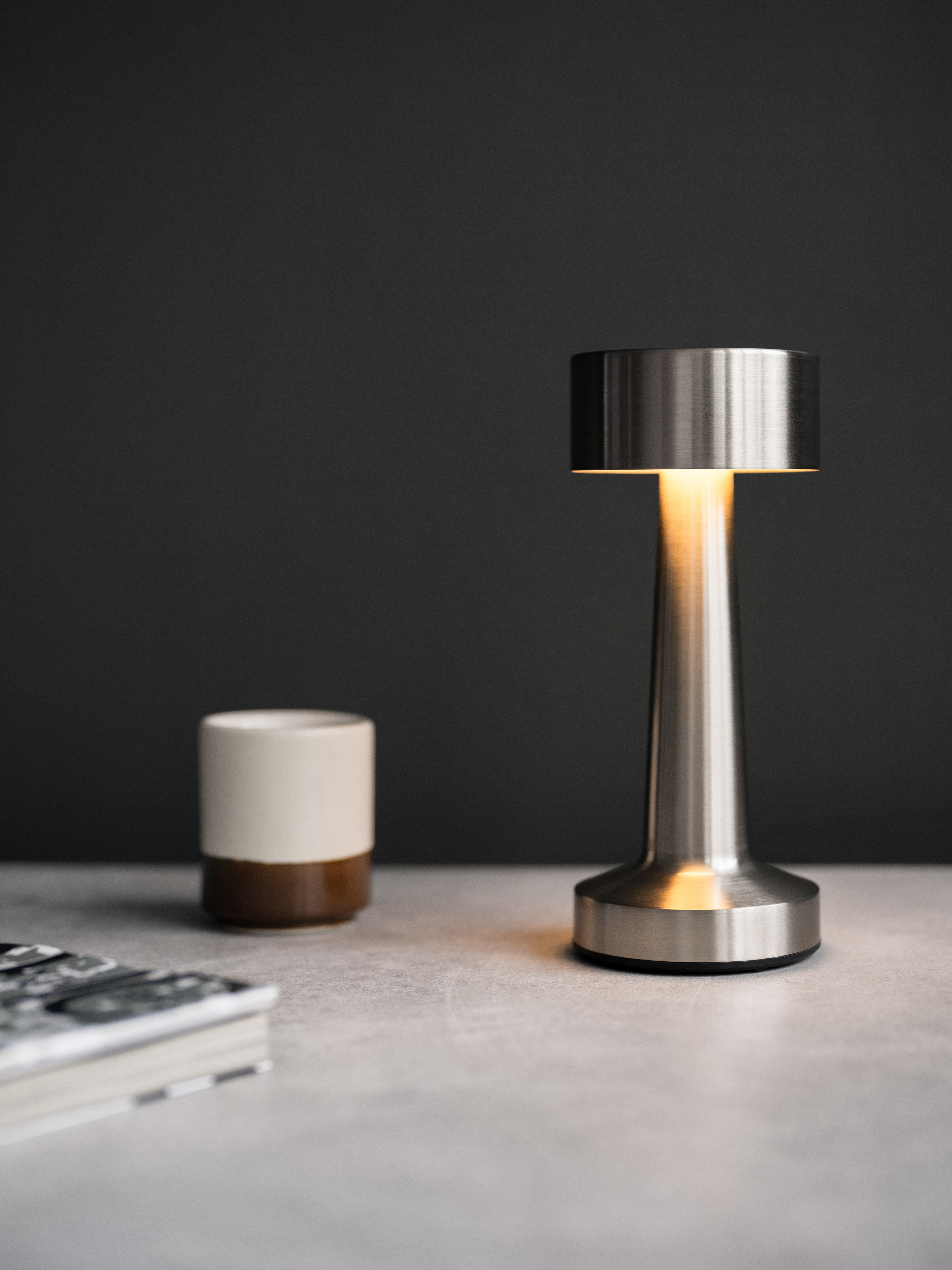 Лампа настольная d=9 см. h=21,5 см. 3 цвета, сенсорная регулировка яркости, нерж., серебристая LED SIMPLE II MGline/1/20/ ВДОХНОВЕНИЕ