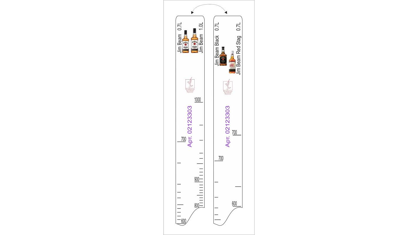 Линейка Jim Beam (0.7л./1л.)/ Black (0.1л.)/ Red Stag (0.7л.) L=28 см. В=2 см. /1/