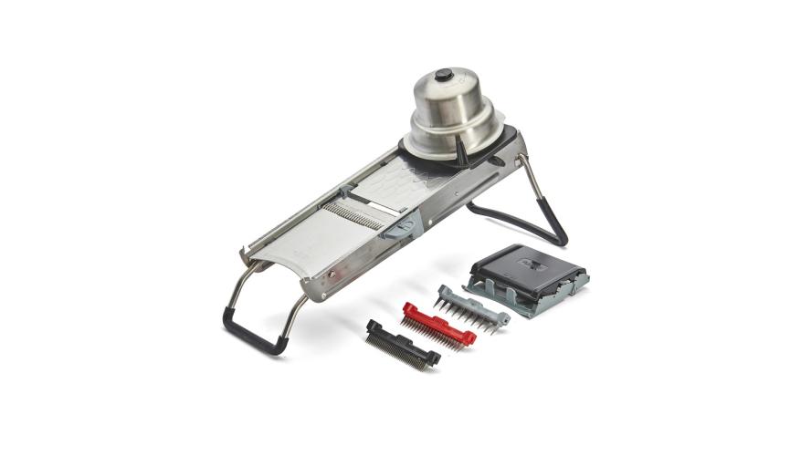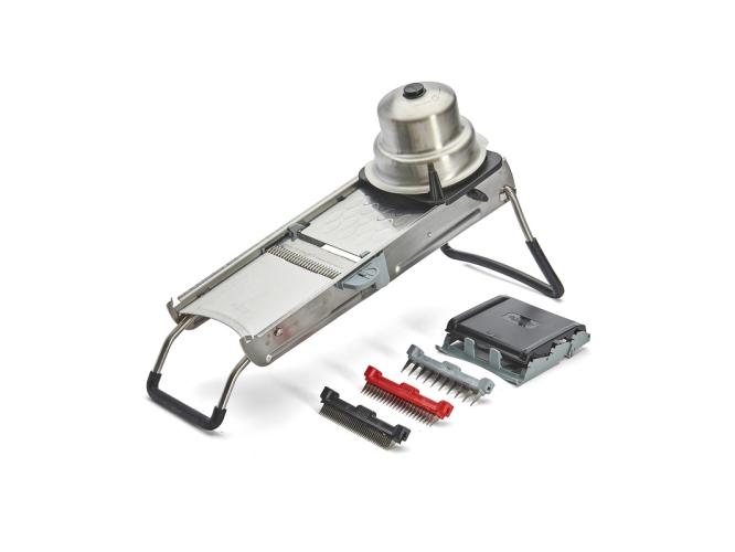 Мандолина (овощерезка) 40*13 см. с 4-мя насадками и толкателем, нерж. и пластик De Buyer /1/