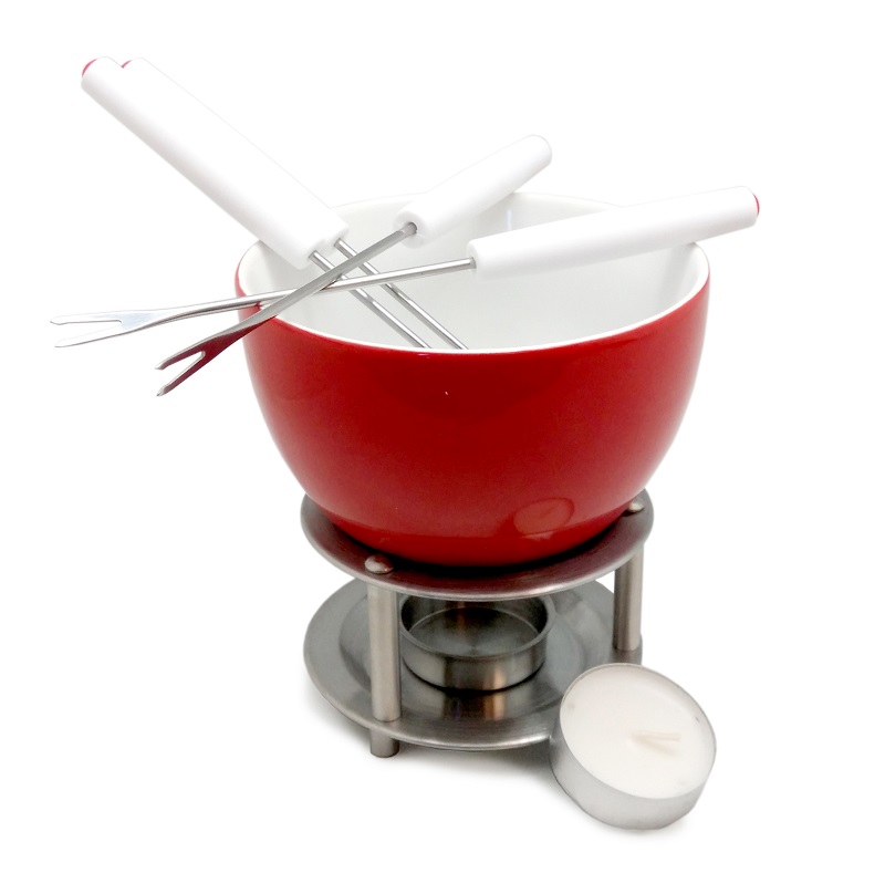 string(499) "Фондю изготовлено из фарфора, белого цвета внутри и красного снаружи,