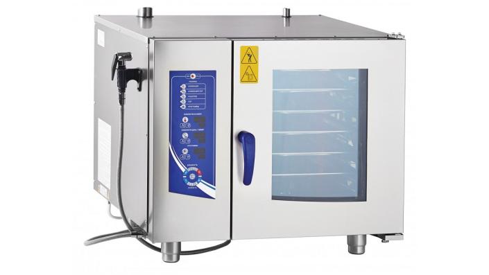 Режим конвекционного парообразования. Этот режим является комбинацией преимуществ режима парообразования и конвекции, при котором достигается высокая скорость циркуляции воздуха, нагоняемого внутренним вентилятором, что гарантирует правильную среду приготовления для всех продуктов и идеальный уровень влажности. Этот режим позволяет реализовать технологические решения приготовления пищи, которые ранее были практически недоступны, и может быть реализован только в пароконвектоматах. Подходит для приготовления всех видов продуктов. Приготовление большей части классических вторых блюд с применением комбинированного режима позволяет Вам готовить блюда за короткое время без использования жиров, без риска подгорания, весовые потери снижаются на 30-50% процентов.