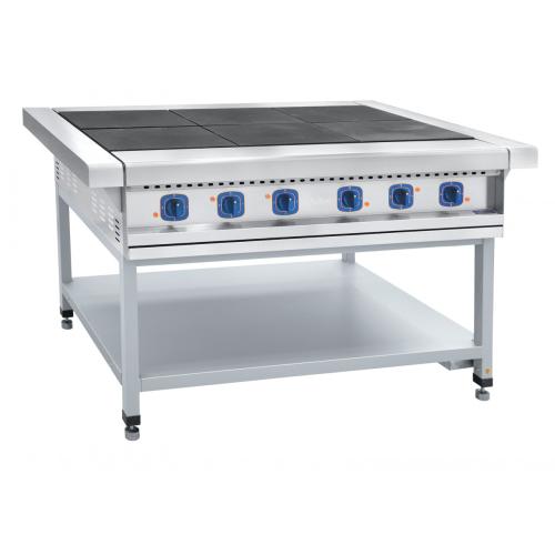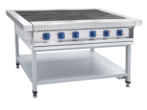 Плита электрическая 6-ти конфорочная на подставке ЭП-6П без жарочного шкафа используется для приготовления всевозможных продуктов питания (первых, вторых, третьих блюд) в наплитной посуде.